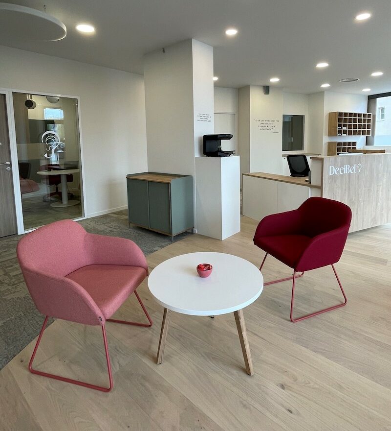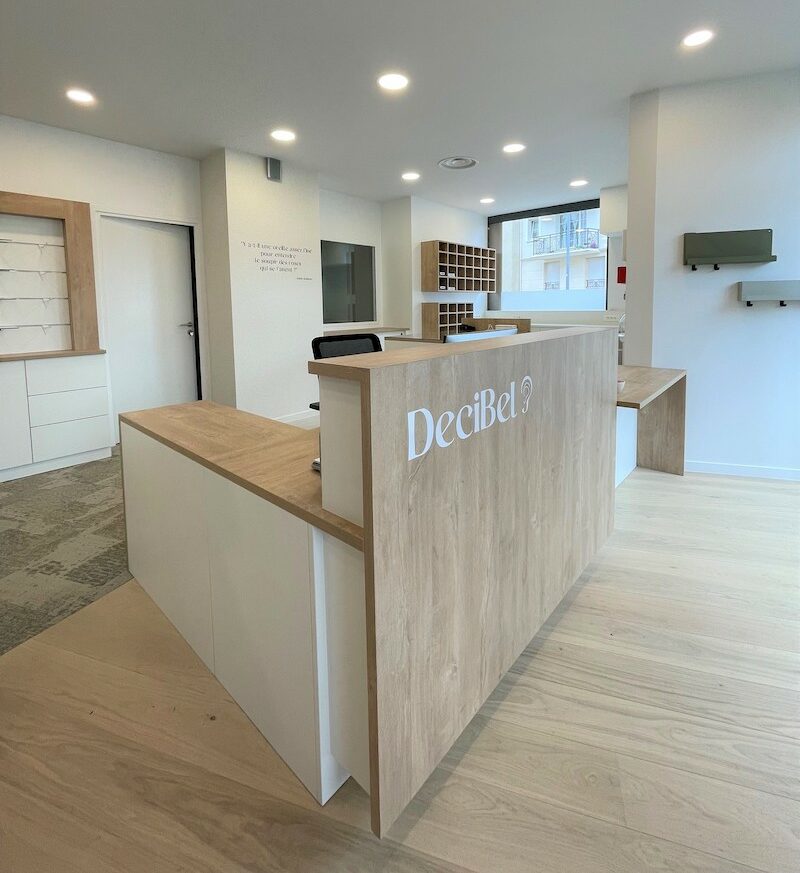 Les cabines acoustiques ont été créées en collaboration avec le client afin que ces dernières soient certifiées et validées par un organisme agréé (obligatoire pour ouvrir un magasin d’audition). Le mobilier implanté dans ces cabines a été dessiné spécifiquement pour ce projet. Par ailleurs, toute la zone laboratoire a été pensée afin d’être le plus optimisé possible, et tout le mobilier a été réalisé sur mesure. L’espace d’accueil a été réfléchi afin d’offrir une parfaite expérience au client, le tout dans un cadre chaleureux et coloré.
